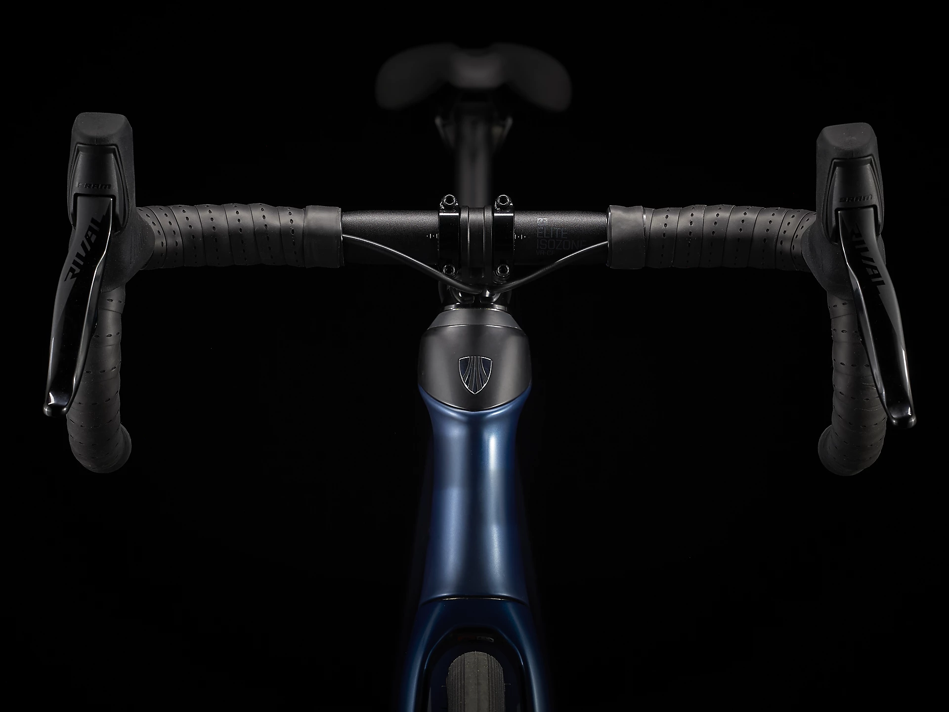 Conducteur : Bontrager Elite IsoZone VR-CF, aluminium, 31,8 mm, passage interne du câble Di2, 93 mm reach, 123 mm drop, 44 cm largeur (58/60/62)