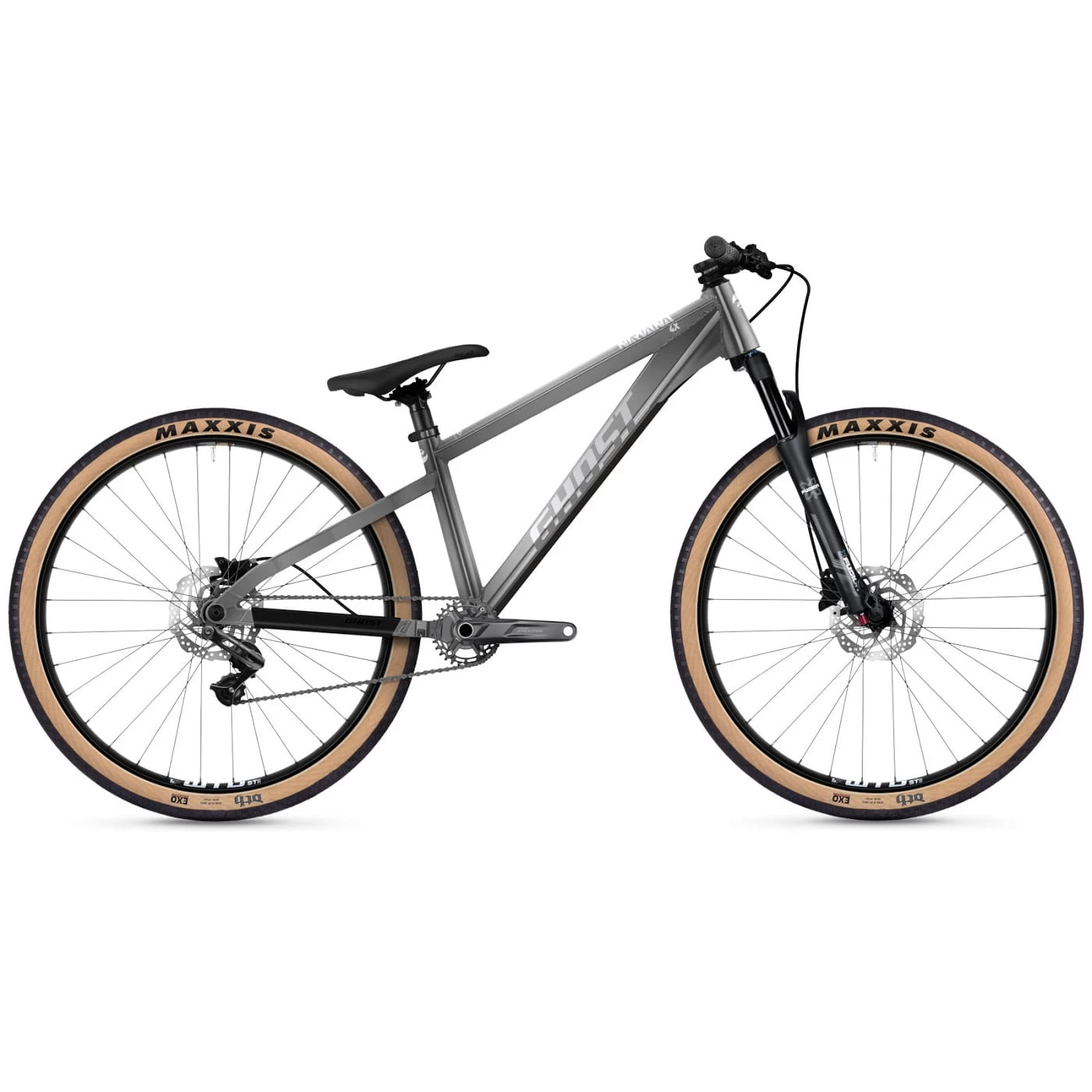 Tu fais des pumptracks et des dirt jumps ? Tu fais aussi des excursions dans les skateparks ? Alors le Nirvana 4X est ton vélo ! Grâce à la géométrie du cadre, le vélo se laisse facilement pousser dans les virages et reste bien en l’air – et la fourche à suspension de 100 mm te donne de l’assurance si l’atterrissage n’est pas tout à fait réussi. Des pneus qui roulent bien et des freins à disque à l’avant et à l’arrière font du Nirvana 4X un vélo parfaitement adapté à une utilisation dans les parcs de dirt et de fourcross.
