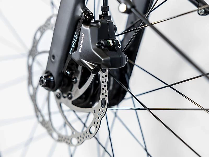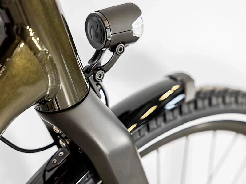 Un cadre lĂ©ger en aluminium avec câbles internes pour un look Ă©purĂ© et un design Stagger, une fourche lĂ©gère en carbone, des roues Bontrager Kovee Tubeless Ready 650B avec des pneus larges de 50C pour amĂ©liorer les performances en tout-terrain et le confort sur des terrains variĂ©s, et un dĂ©railleur Shimano Deore 1×10 facile Ă utiliser et sans dĂ©railleur. Mais ne t’inquiète pas : avec le large Ă©ventail de rapports de la cassette 11-46, tu disposes de plus de vitesses qu’il n’en faut pour les montĂ©es vigoureuses et les descentes rapides. En plus, tu reçois une dynamo de moyeu pour alimenter l’Ă©clairage, des freins Ă disque puissants, des poignĂ©es ergonomiques, des garde-boue, une bĂ©quille latĂ©rale et un porte-bagages arrière compatible MIK.